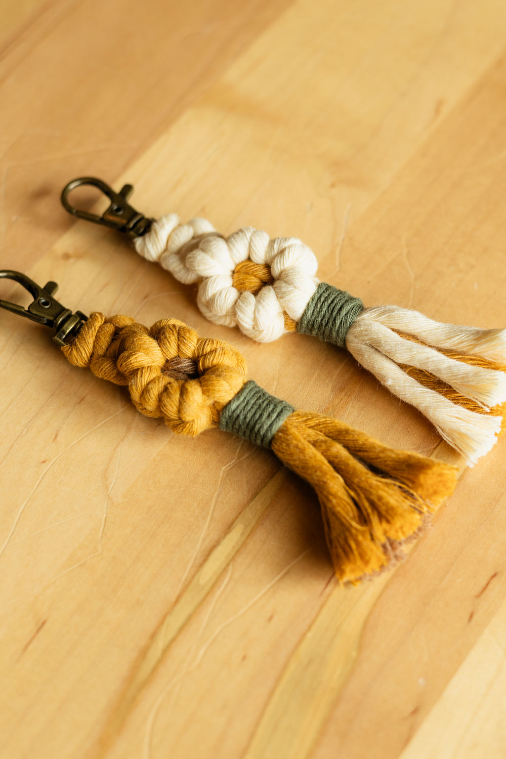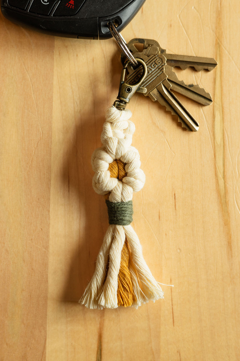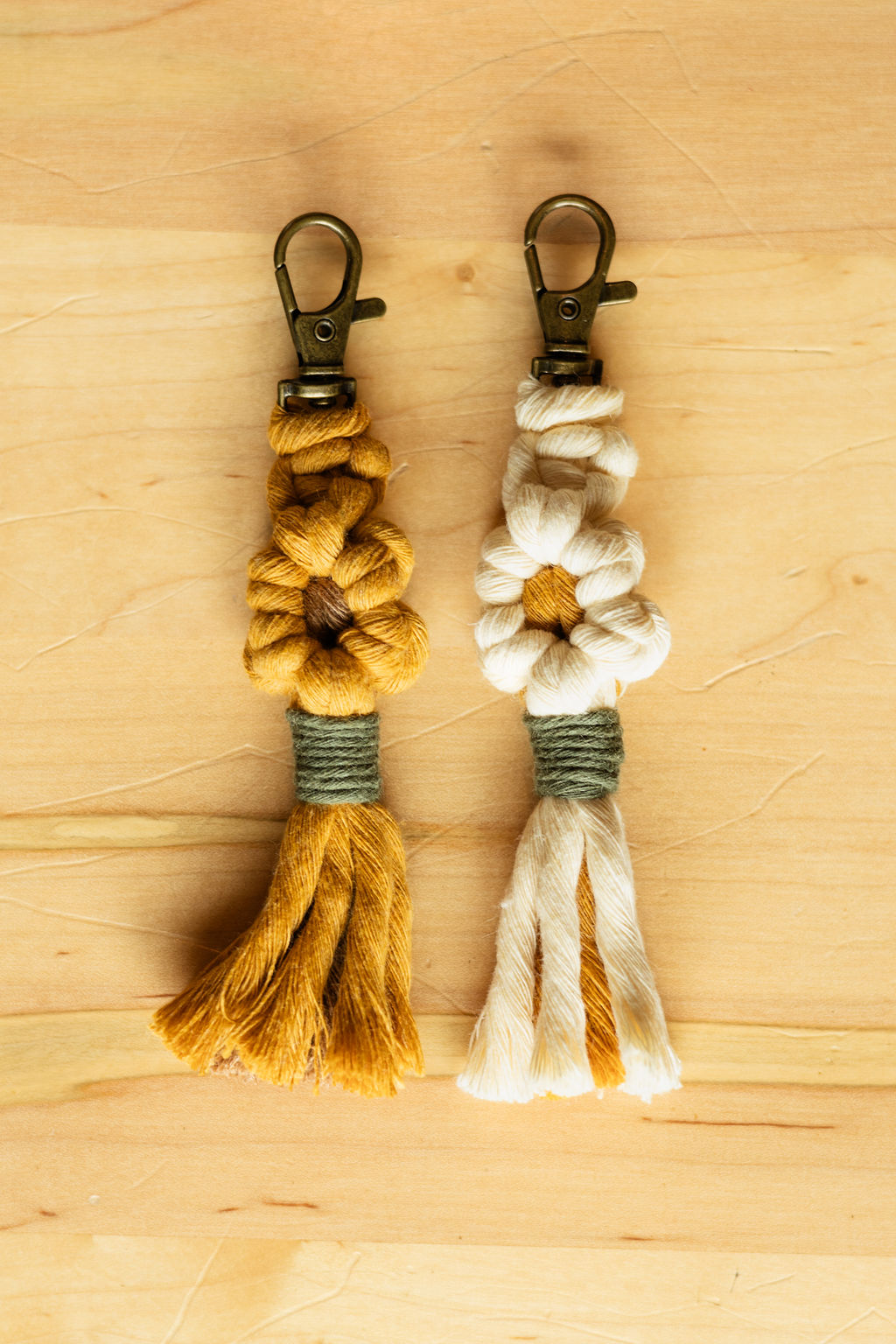 Quit wasting time looking for those dang keys and upgrade that handful of metal with a macrame daisy key chain made with 100% recycled cotton cord!