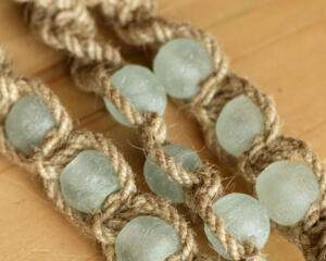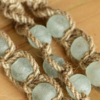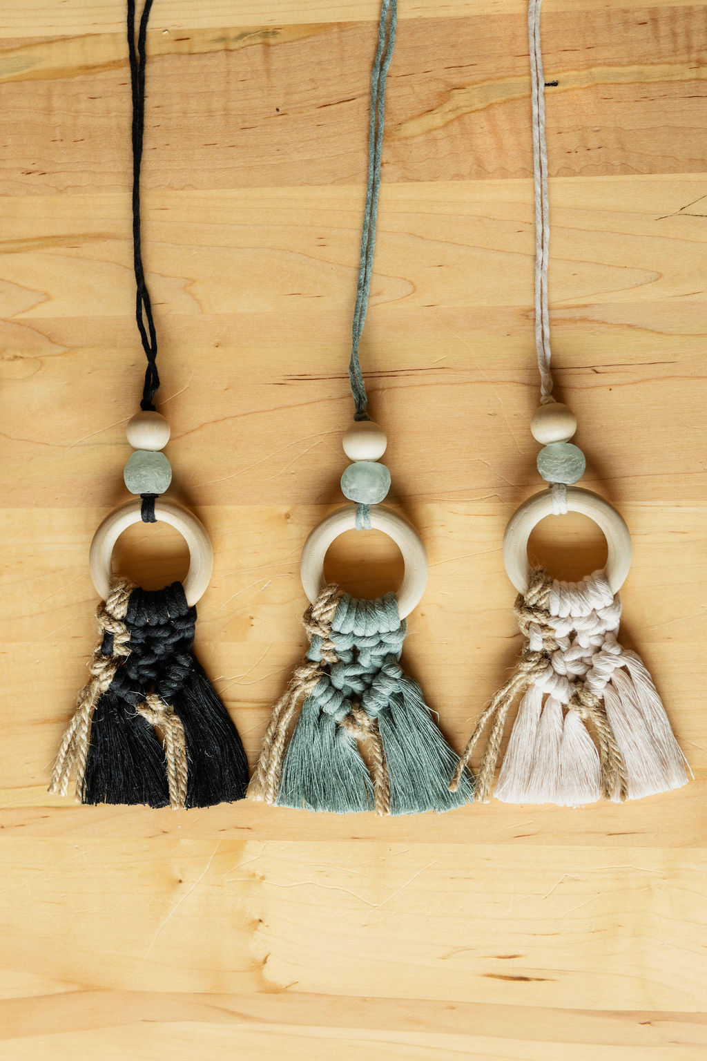 Ride in style and smell good while you're at it! Our sea glass macrame car diffuser is part of the Earth & Sea collection that uses a mix of jute rope, recycled cotton cord, natural wood and recycled glass beads. To use, hang from your rear-view mirror and simply add 1-2 drops of any essential oil to the wood bead.